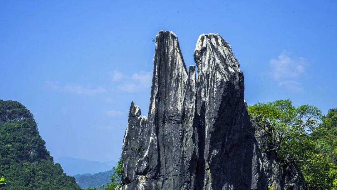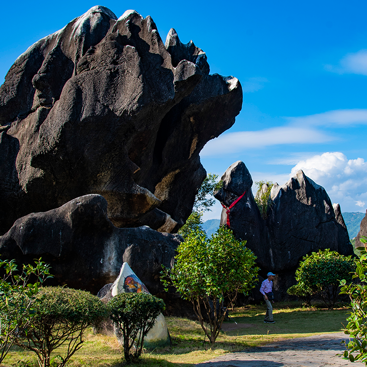 这块石头三峰突起,其中一峰酷似笔锋,称为“三秀峰”。但是你看它的形状是不是像骆驼?所以这个景点又叫万古神驼。