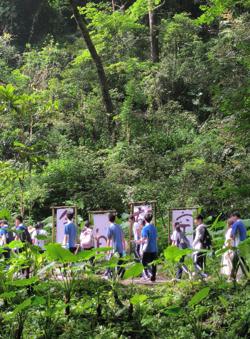 在海芋世界里同学们自然的被绿意包裹,这里有着“环境卫士”称号的海芋,又名“滴水观音”,它对环境尤为敏感,所以同学们可以尽情与自然互动亲触植被脉络,大口吸氧!