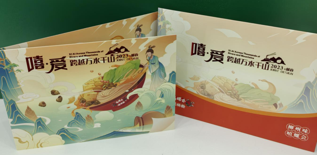 “嘻螺会”与中国邮政跨界合作的首家螺蛳粉主题邮局,并推出首款螺蛳粉主题邮票、联名主题螺蛳粉礼盒、主题邮局系列明信片及系列城市打卡纪念戳等文创产品。中国邮政跨越万水千山将信物送到人民手里,“嘻螺会”跨越万水千山将柳州螺蛳粉的美味传递给喜爱螺蛳粉的朋友们,是文化味与烟火味的双向奔赴。在这里能实现打卡盖章自由,可以把想对父母、爱人、自己说的话通过特别的方式传递到身边。