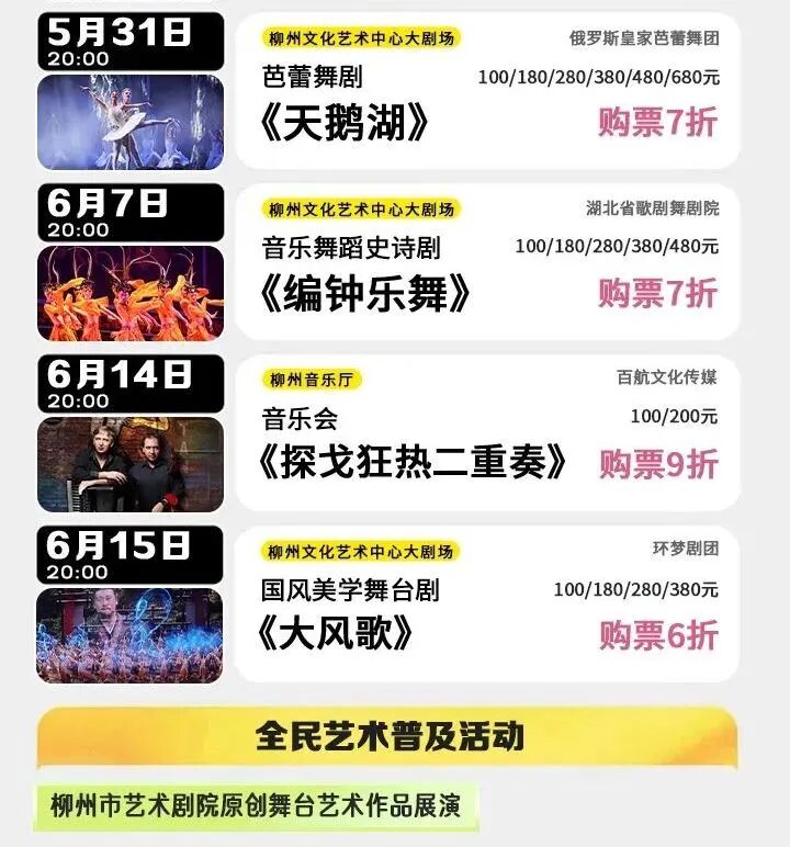 即日起,使用广西文化惠民卡购票,充值200补贴200,再叠加限时5折优惠,相当于2.5折起!