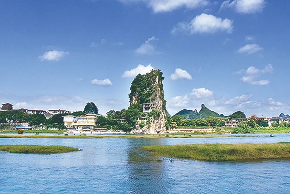 象鼻山是桂林城徽的标志元素,形态神似一头在漓江豪饮的巨象,山水交相辉映,构成一番“象山水月”的奇妙景观。游客可沿梯爬山,也可坐竹筏穿过象鼻与象身间的洞,纵享寄情于山水的快乐。