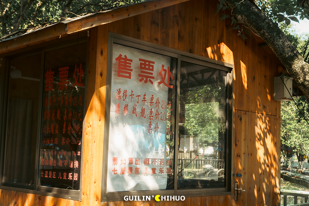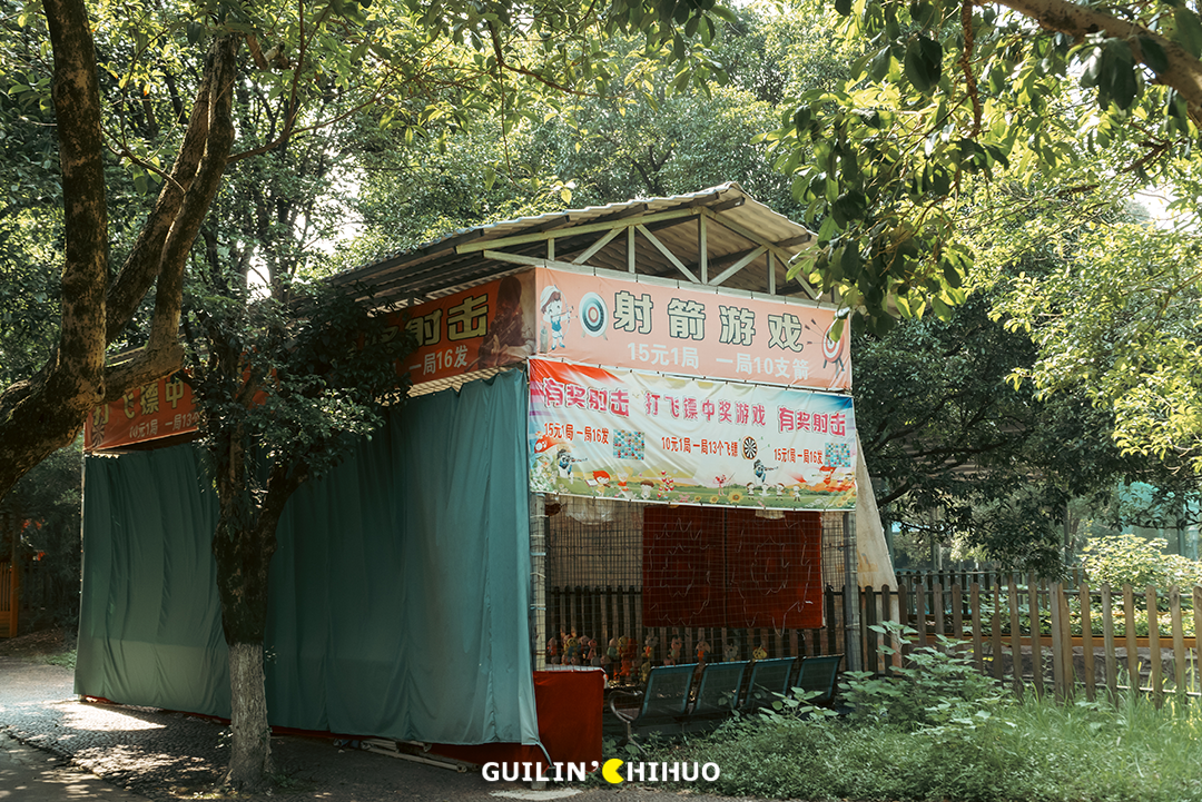 记得以前,每个游乐设施外面都有个小木屋,有人坐在里面卖票,交了钱,给撕张票,孩子就拽着那张票,拉着大人的手去排队。其实里面有些游乐项目,应该也是在经营的变迁中,根据市场需求新加的,像是射箭、卡丁车...这些应该年长一些的桂林人小时候没有玩过。(玩过的留言给我看看有多少🙋♂️🙋♀️)