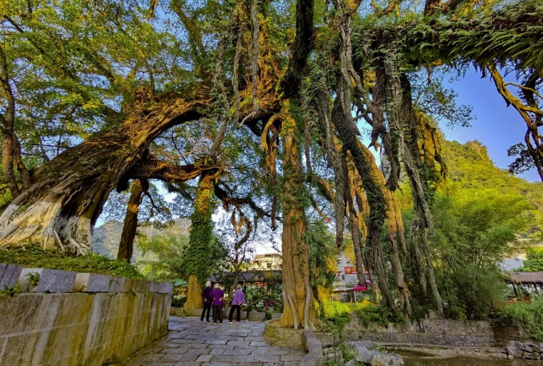 龙爪榕,树龄850多年,是目前古镇中最古老的榕树之一。因其枝干从半空倒垂而下,仿佛天外神龙伸出的一只龙爪,故而得名。其如龙爪般下垂的枝干其实早已枯萎,因气根与藤蔓缠绕而挂垂下来,而树干本体却依然生机勃勃,见证了整座古镇的兴衰变迁。