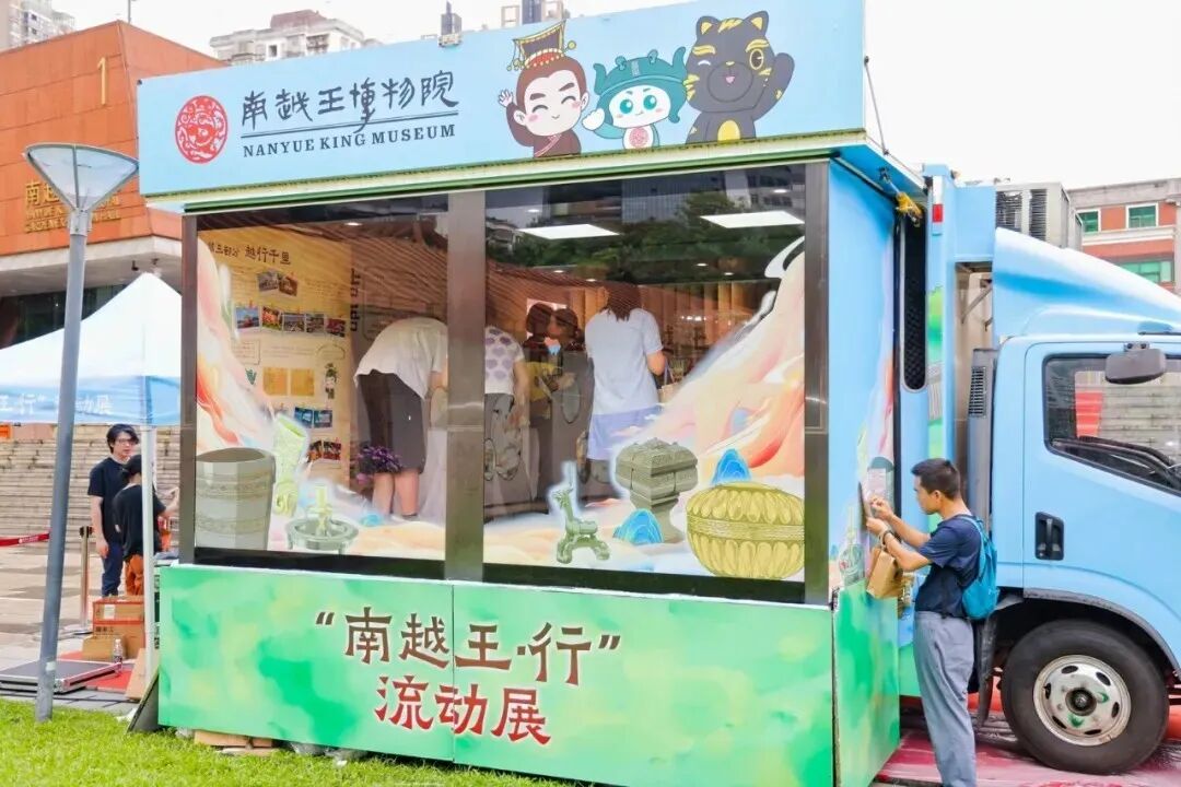 “房车里的南越国”是流动博物馆内呈现的全新精品展览。展览内容立足于南越国史研究资料以及院流动展送展历程,通过“南越立国”“海丝遗风”“越行千里”三个部分讲述南越国向海而生的历史往事,迈步两千年后“南越打工人”的送展路途。