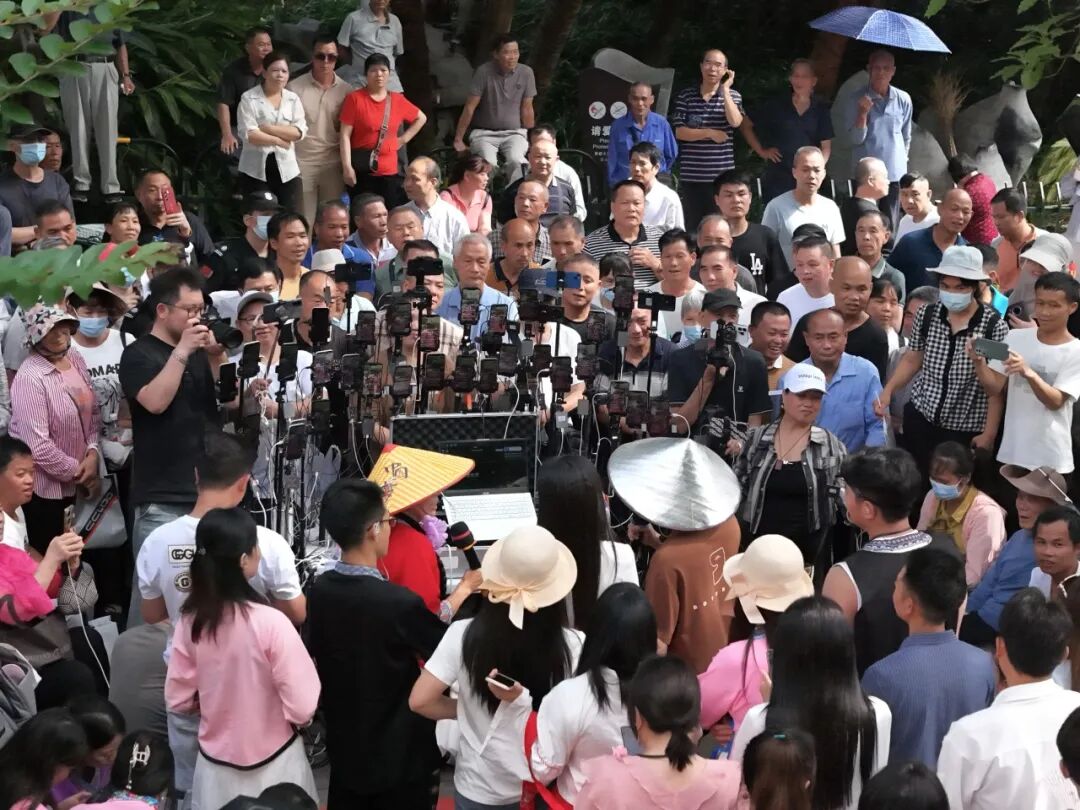 ▲鱼峰歌圩盛况,广西歌王陆连芳和徒弟们在直播