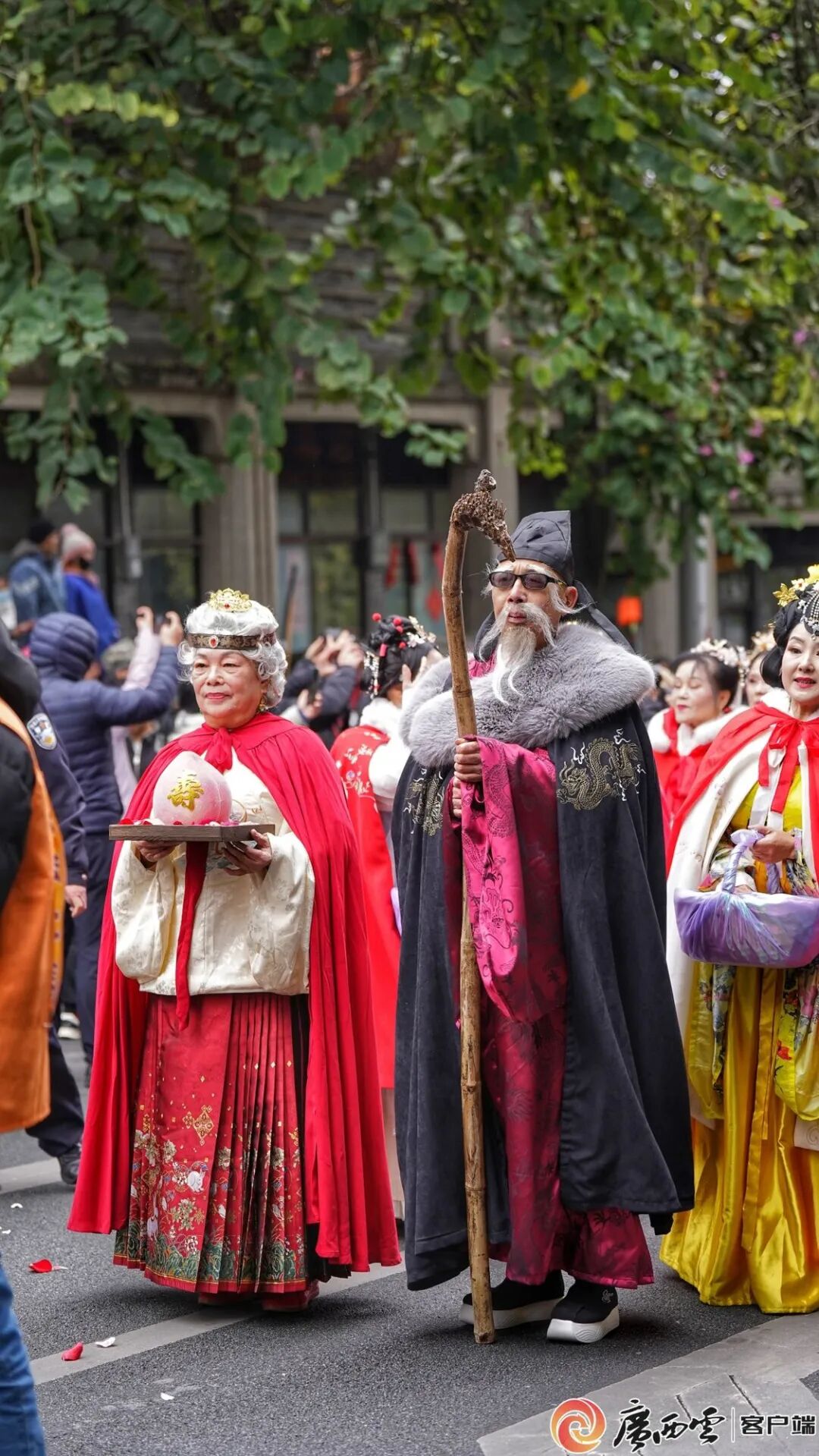 2024年元宵节,柳州市城中区群众舞龙舞狮参加传统的“龙王出游”非遗民俗活动。图为途经曙光西路历史文化街区的场景。出游人群中不乏中老年人参加cosplay角色扮演。唐绍怡 摄