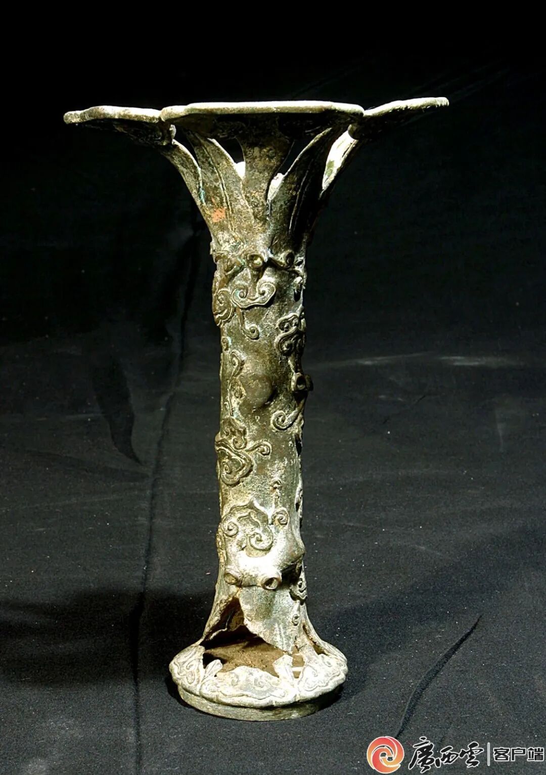 明代镂空灵芝铜觚。1964年在柳州市小南路棉纱纺织公司小南门市部挖地下室时,于十米深处出土。柳州市博物馆供图