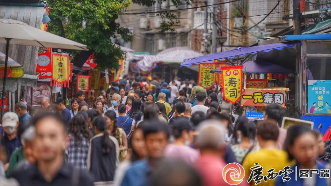 柳州青云马路市场人群熙熙攘攘,经典小吃摊前排起长队。近年来的“特种兵旅游”现象,让这条不足四百米长的老街迅速在全国火爆出圈。唐绍怡 摄