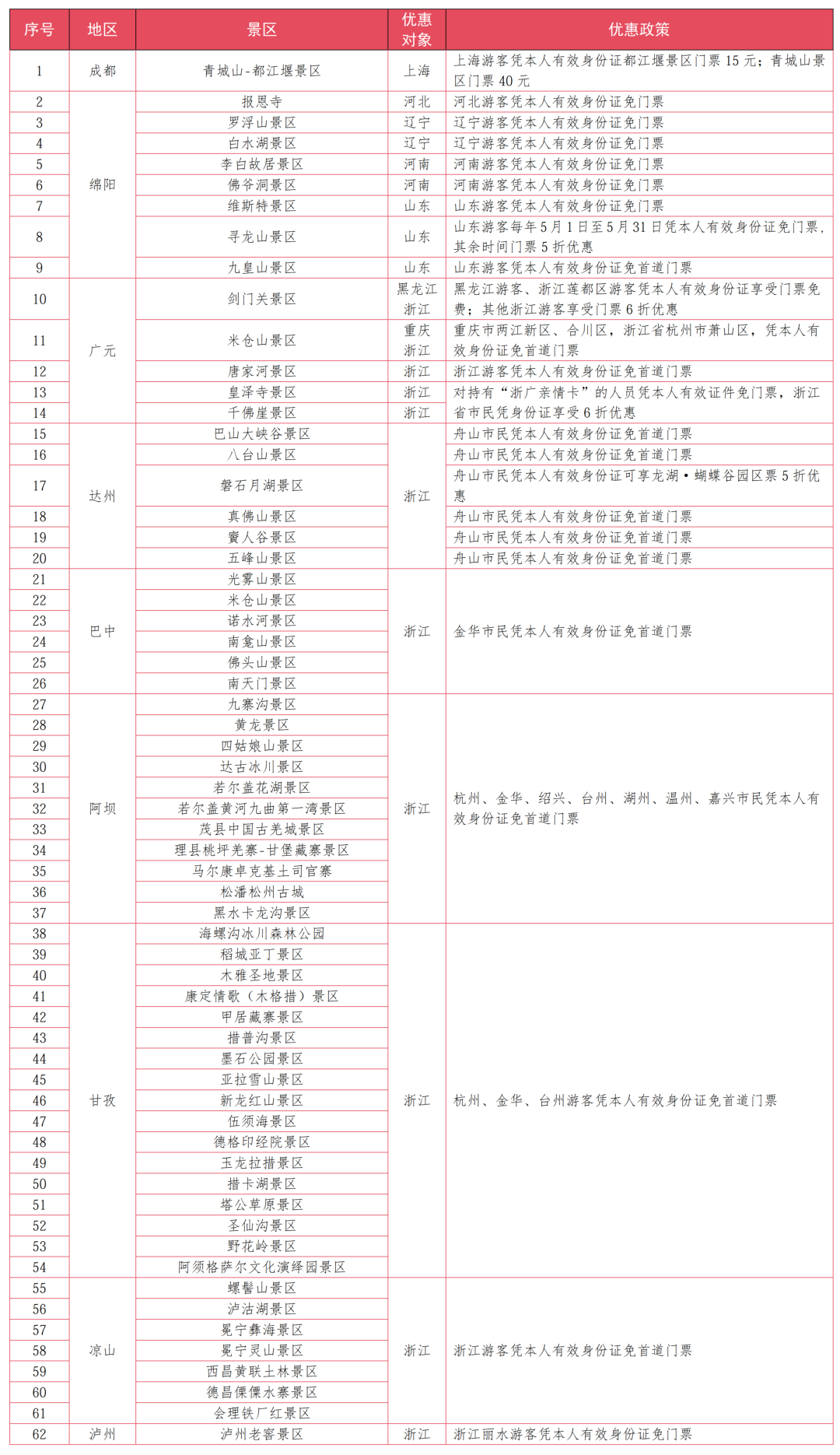 ❗️相关景区优惠政策以属地市(州)及景区官方公布内容为准