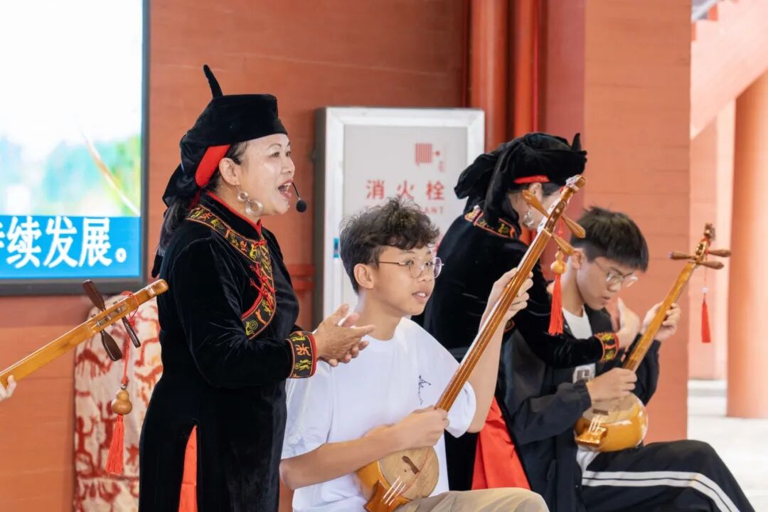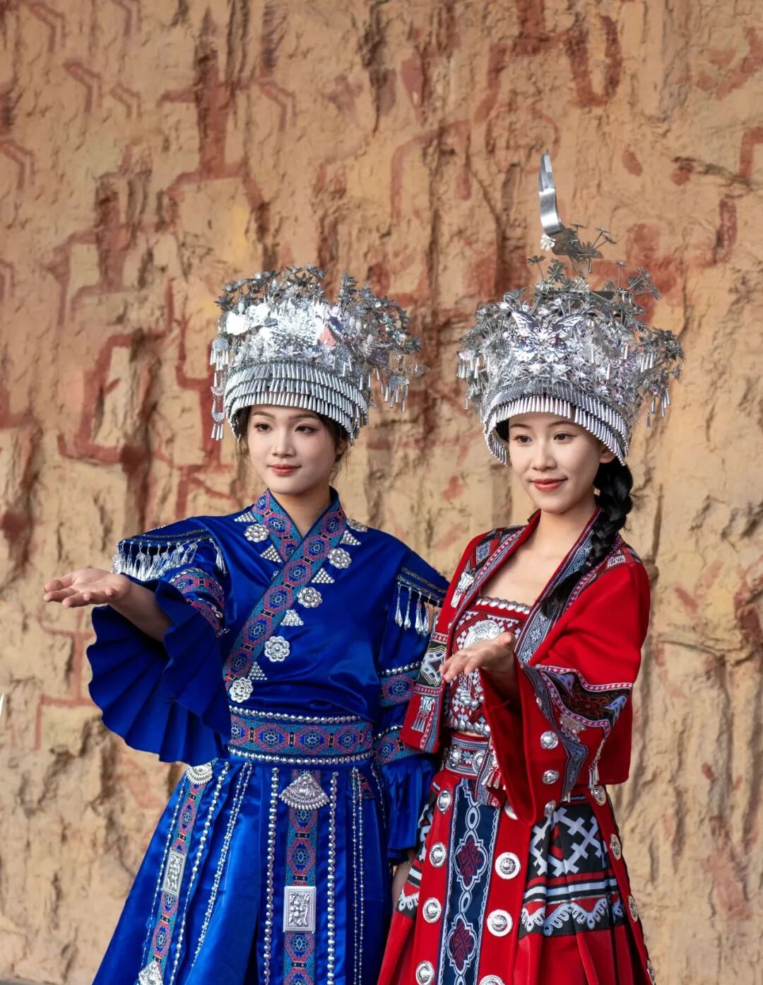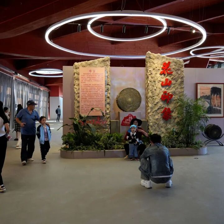 花山岩画零元游玩第一步攻略来啦~ 到达游客中心一楼就能直奔天琴表演区,听非遗天琴的清脆旋律,还能和穿民族服饰的演员贴贴拍照,互动感拉满,旅途开篇就超有意义!