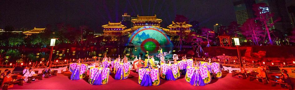 2020年10月1日以来,隋唐洛阳城国家遗址公园九洲池景点推出《神都志·幻唐之夜》大型沉浸式演艺,以唐朝盛世时期的武皇大寿故事元素为背景,通过沉浸式实景演艺再现盛世唐朝、弘扬传统文化。演出利用九洲池皇家园林夜景,充分加入现代科技手段和灯光效果,将水雾变幻与实景演出相结合,为游客呈现出一场如梦如幻的夜游之旅,使游客仿佛穿越千年、梦回盛世大唐。演出上演以来好评如潮,不仅填补了洛阳演艺市场空白,更成为洛阳近期人气之王。