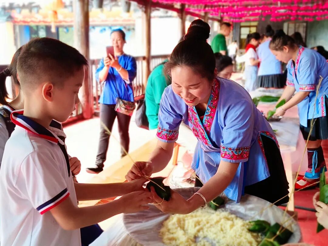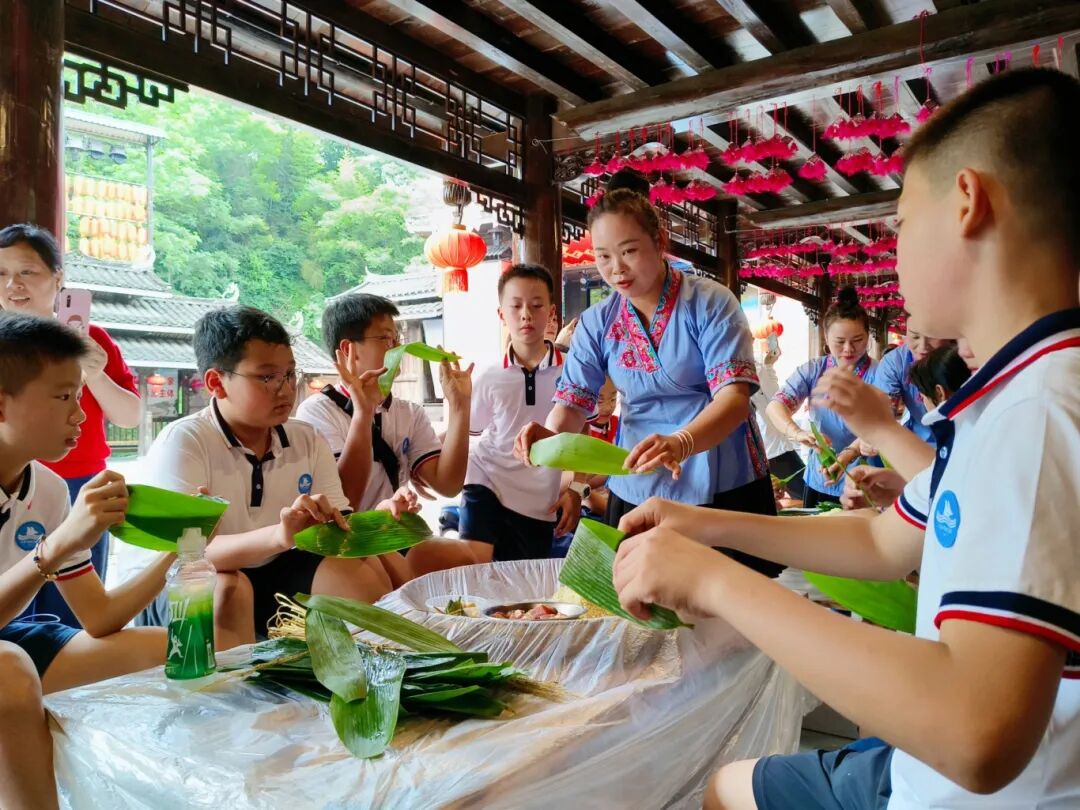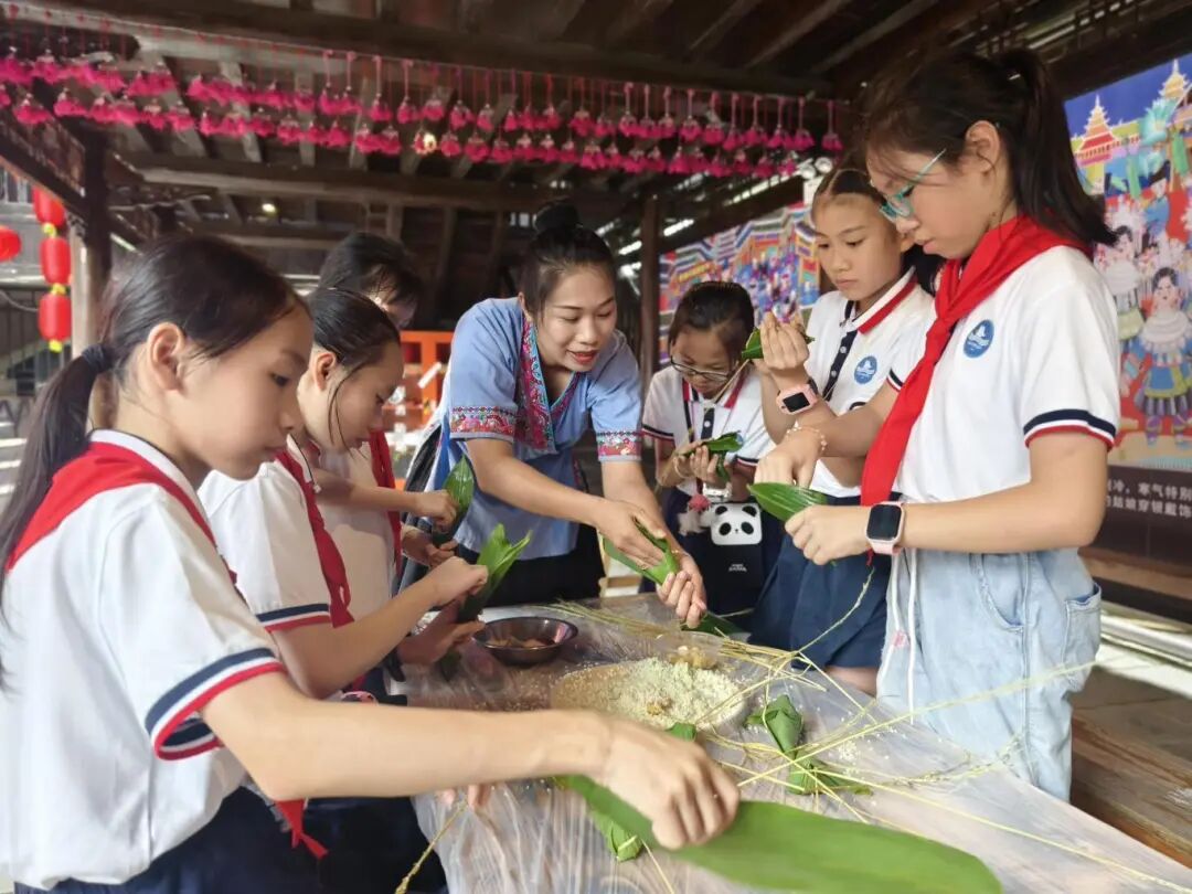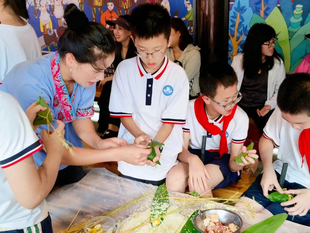 包粽子的体验活动让学生们兴致勃勃。