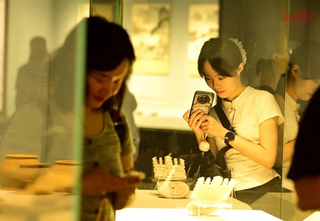 游客用手机记录博物馆内展出的文物 图源:柳州1号