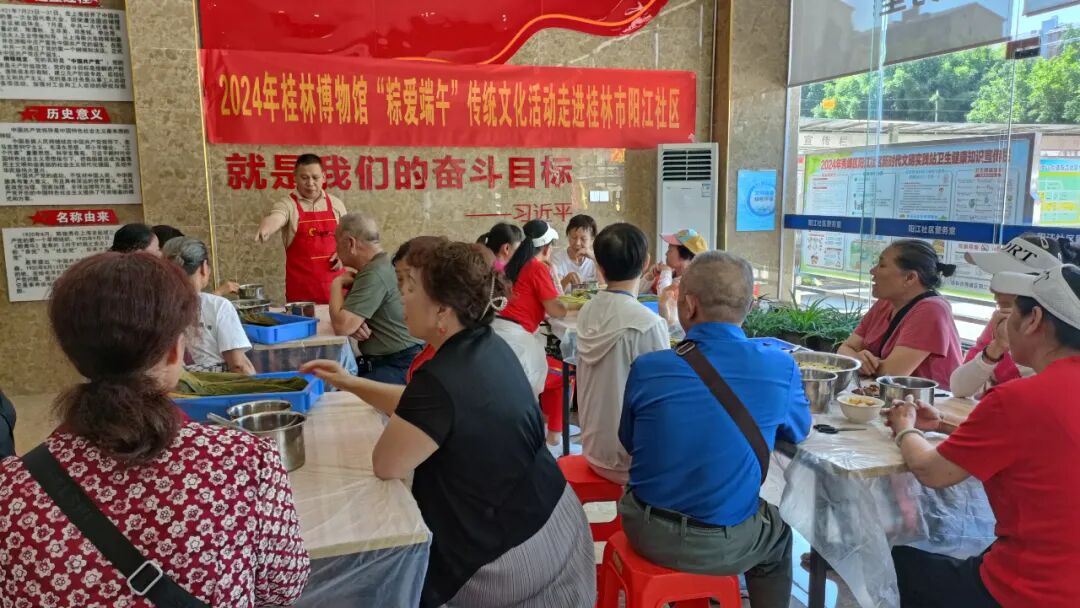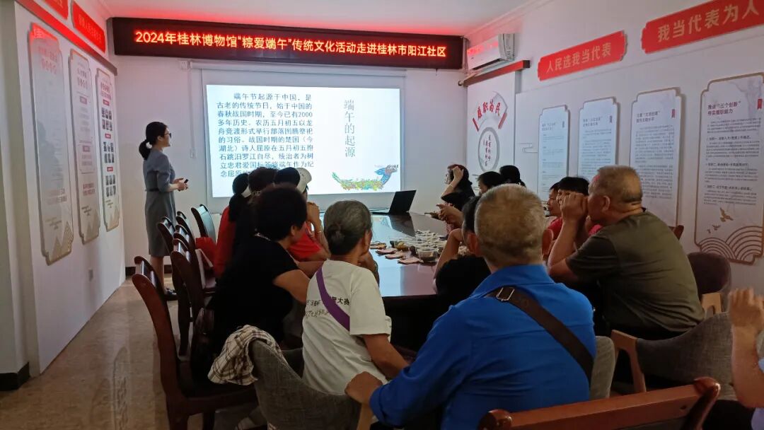 端午节是中国的传统节日。为继承和弘扬中华优秀传统文化,营造祥和、安康的节日气氛,6月7日上午,桂林博物馆在秀峰区阳江社区组织开展了“粽爱端午”传统文化活动,共有近60位社区居民及社区工作人员参与此次活动。