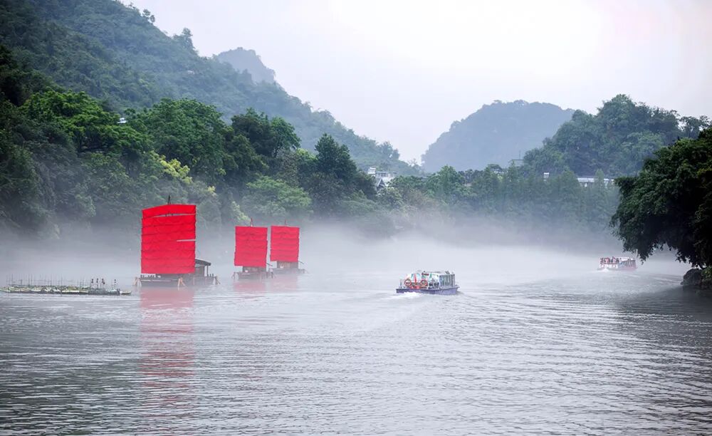 雨中的桂林,景色迷蒙缥缈,一切在雨丝中都变得十分的朦胧和梦幻,就像是一幅舒展开来的水墨长卷,淡淡的、薄薄的,让你看不清,看不透,摸不着。青山绿水在雨中更加妩媚多姿,就像是一首永吟不倦的诗,一曲永唱不厌的歌。