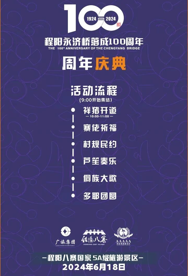 在中国的民间传统中,农历五月十三日被称为“关公磨刀日”,今年恰逢程阳八寨永济桥落成100周年庆典,2024年6月18日(农历五月十三)程阳八寨景区结合桥文化,举办了隆重的庆祝活动!