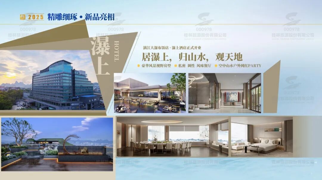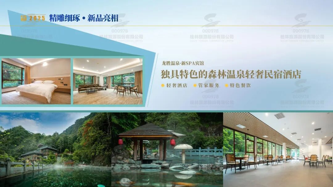 会上全面回顾2024年公司通过创新研发的产品和策划的活动案例,现场发布了2025年桂林“旅股新春文化旅游节”、“三月三桂林旅股民俗节”、“两江四湖-中秋花灯会”等有品质有品牌价值的综合性文旅活动。同时还发布瀑上·酒店、龙胜温泉新SPA、贺州温泉-超级复合型温泉酒店、漓江游船音乐会、两江四湖主题船系列、两江四湖跨界联动“诛仙世界”、银子岩第二届财神节、丰鱼岩“芋你同行”、龙胜温泉“健康养身 趣享温泉”、资江天门山非遗传统文化秀、山水电音2.0等新品、活动共计18个。