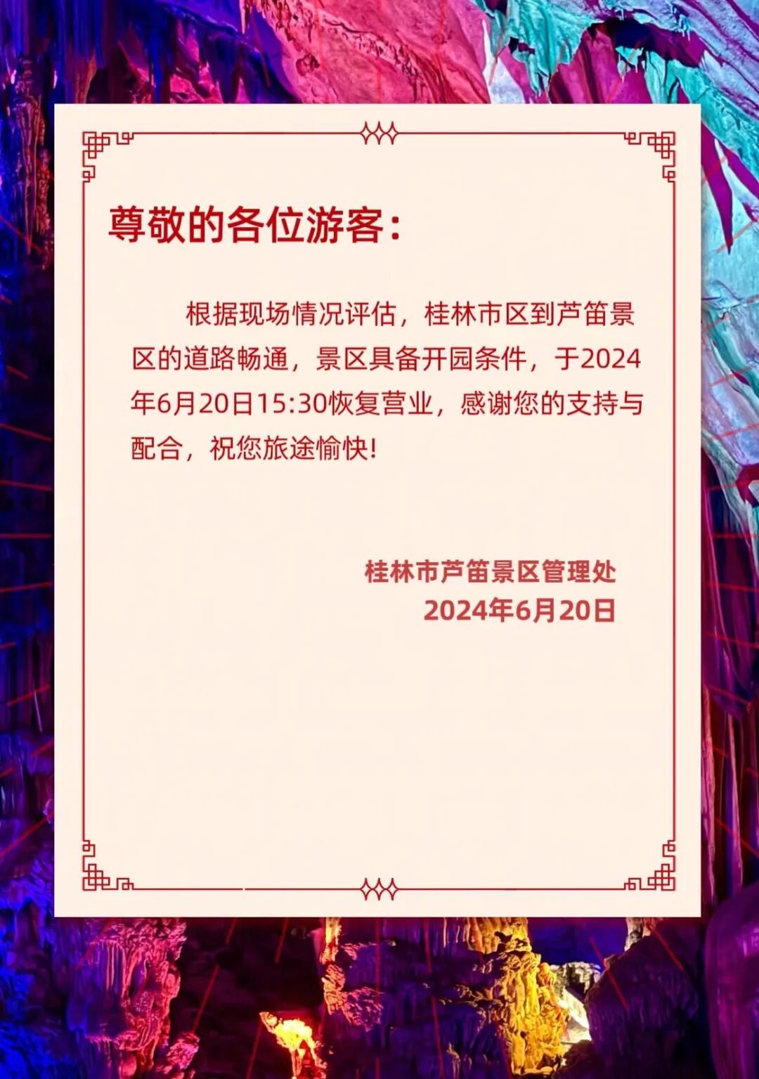 桂林市芦笛景区恢复营业
