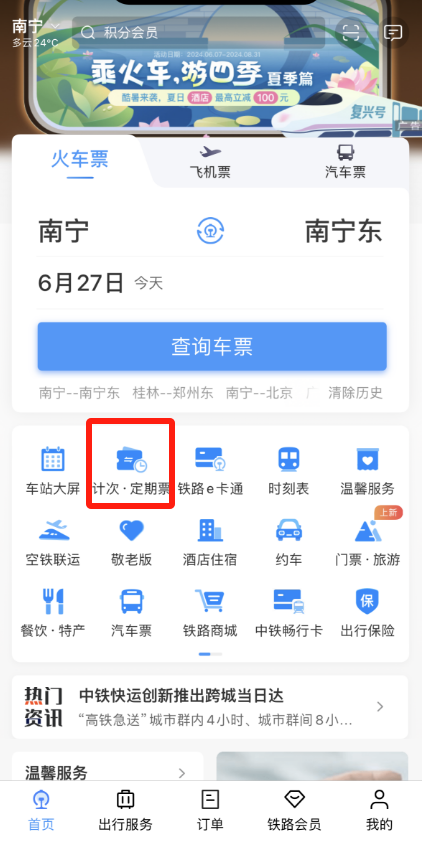 近年来,国铁南宁局在南广、邕北、南凭高铁南崇段等线路陆续推出计次票、定期票产品,不断优化旅客出行体验。“桂林—柳州—南宁—北海”旅游计次票上线后,将为加快建设桂林世界级旅游城市提供源源不断的运能,助力南来北往的旅客“一键游广西”。