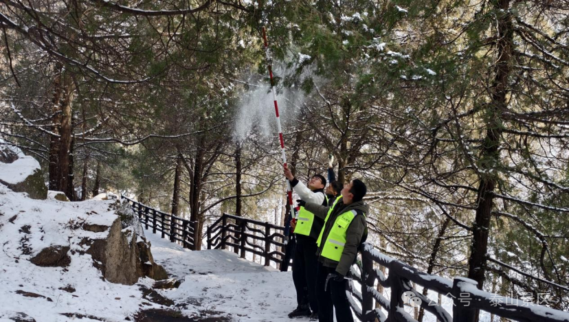 按照“早动员、早部署、早行动”的方案,管理区及时关注天气变化,第一时间启动应急预案,组织30余名工作人员,不畏严寒,一大早冒雪开展除雪行动。特别是针对柏洞、一亩松等古树名木集中区域,组织攻坚力量,使用除雪棍慢慢抖落树枝上的积雪,为树木减压。严防因积雪过厚压伤古树名木、导致断枝,全力确保辖区古树名木安全。