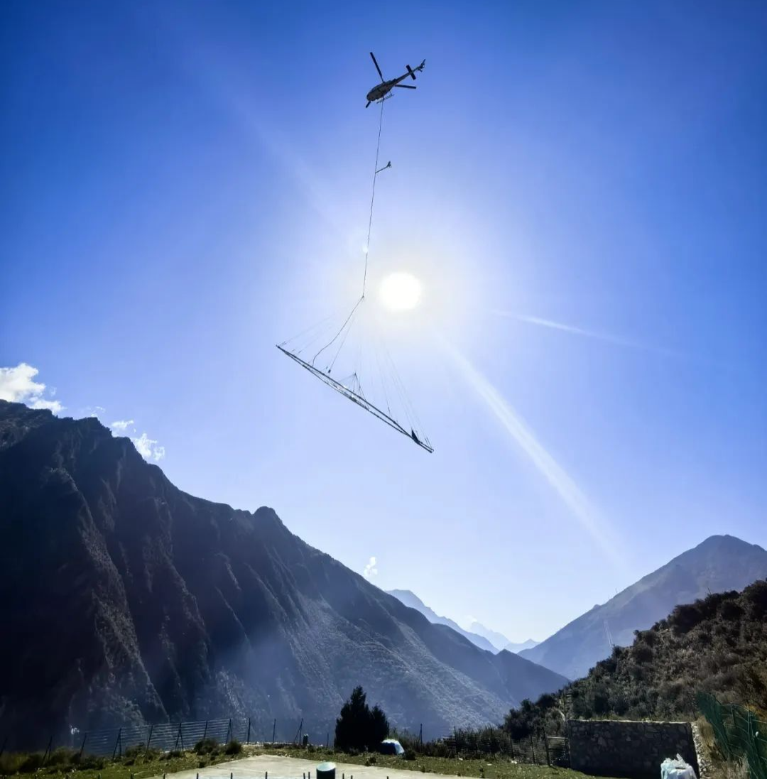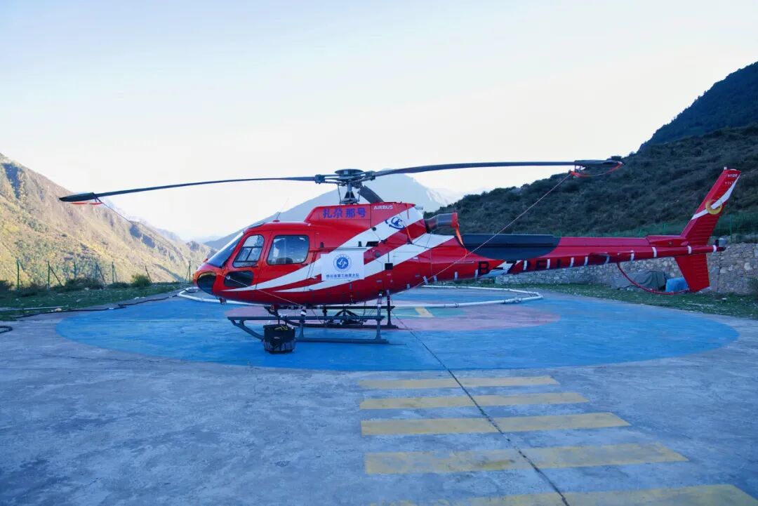 11月15日中午1点过,天气清朗、无风无云,距四川省甘孜藏族自治州丹巴县城10公里处,一架直升机带着“大尾巴”从停机坪起飞,朝着远处连绵起伏的深山缓缓飞去。