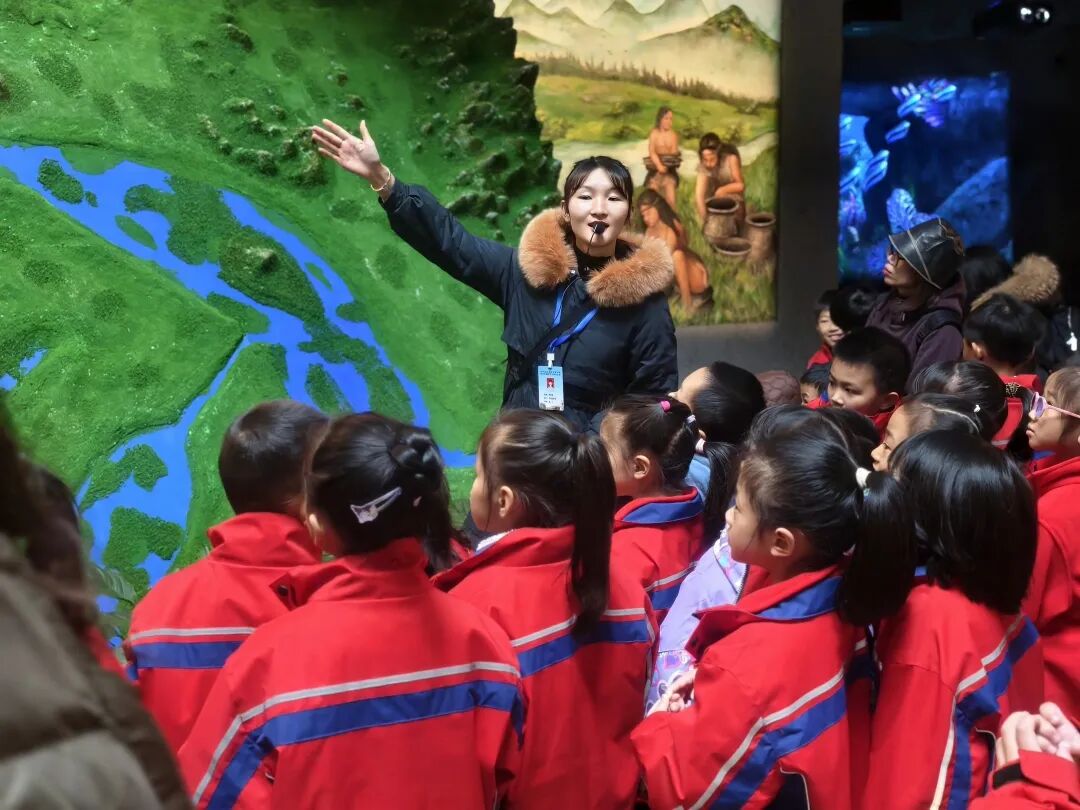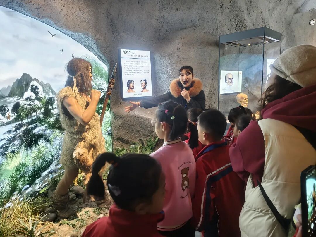 走进展示馆,洞穴式的展示馆让人眼前一亮,仿佛置身于万年前的洞穴家园。展示柜中摆放的一件件古老文物,无声地诉说着关于它的神秘故事,不禁让小朋友们真切感受到历史的沧桑与变迁。这些文物不仅是时间的印记,更是人类文明智慧的结晶,让小朋友们深刻体会到古老文化的魅力。