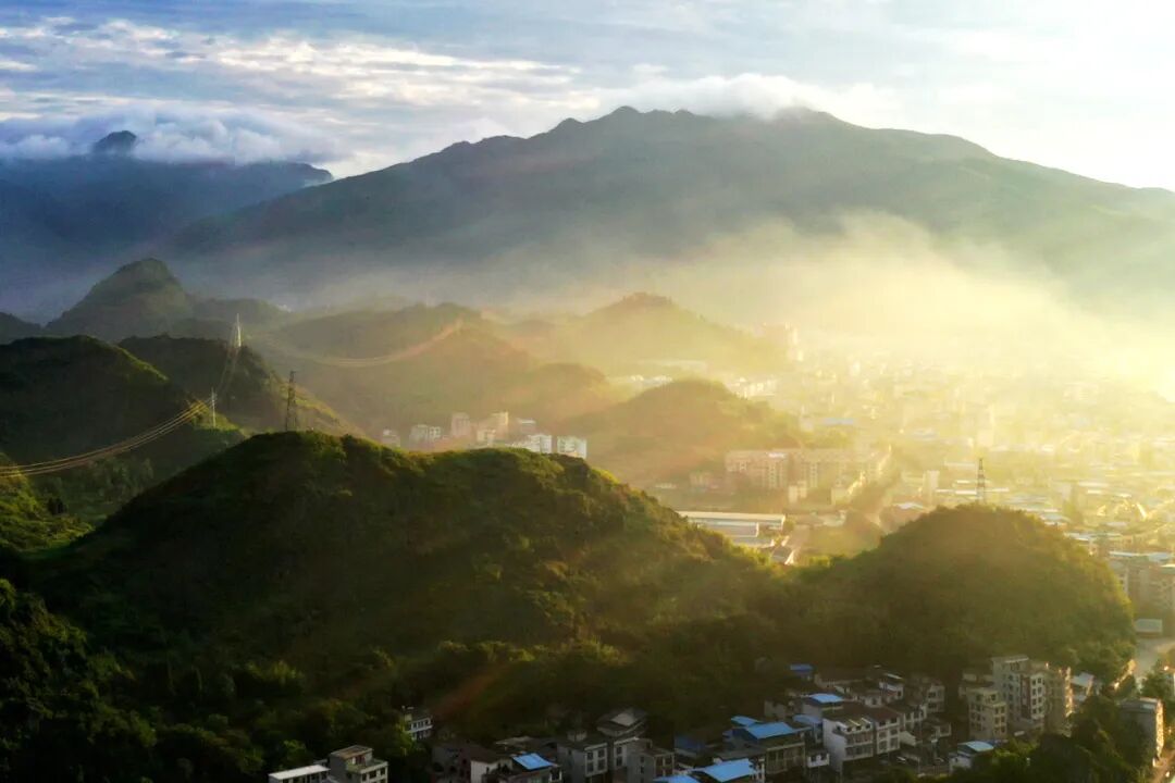 龙岗者,县城后山脉也,花草长春,岩壑耸翠,龙川绕其北,灌水环其前,蜿蜒磅礴,烟云缭绕,远眺若龙飞,拾级而上,登龙岗亭,则县城全景尽收眼底,为灌阳灵秀之一,是为“龙岗拥秀”胜景。