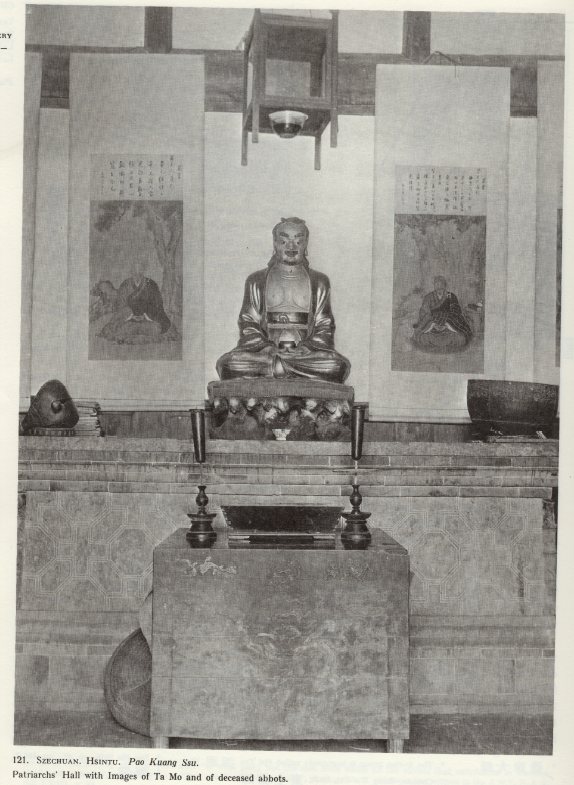 对于晚清民国时期的巴蜀古建筑摄影来说,有三位主要摄影者为古建筑专业学者,他们分别是德国建筑学家、1908年考察中国古建筑的恩斯特·柏石曼;丹麦建筑学家、建筑师,1930年代考察中国古建筑的艾术华;我国古建筑学家,抗战时期居住在四川的梁思成。而有意思的是,这三人最重要的交汇地,就是宝光寺。其中,柏石曼自己拍摄的作品虽然目前只有两张现世,但我们在相关专业文献中,已能看到他收藏的宝光寺五百罗汉堂照片。