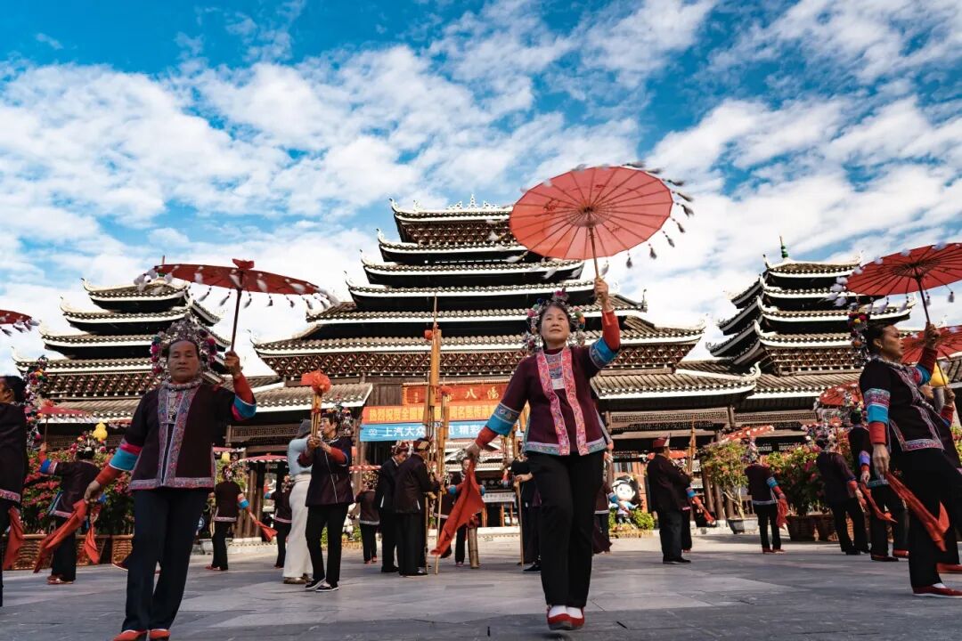 在程阳八寨南服务区,寨门口的大型芦笙踩堂、侗族大歌展示让你感受何为侗寨迎客礼,悠扬的芦笙旋律下舞着侗家人的热情与欢声。