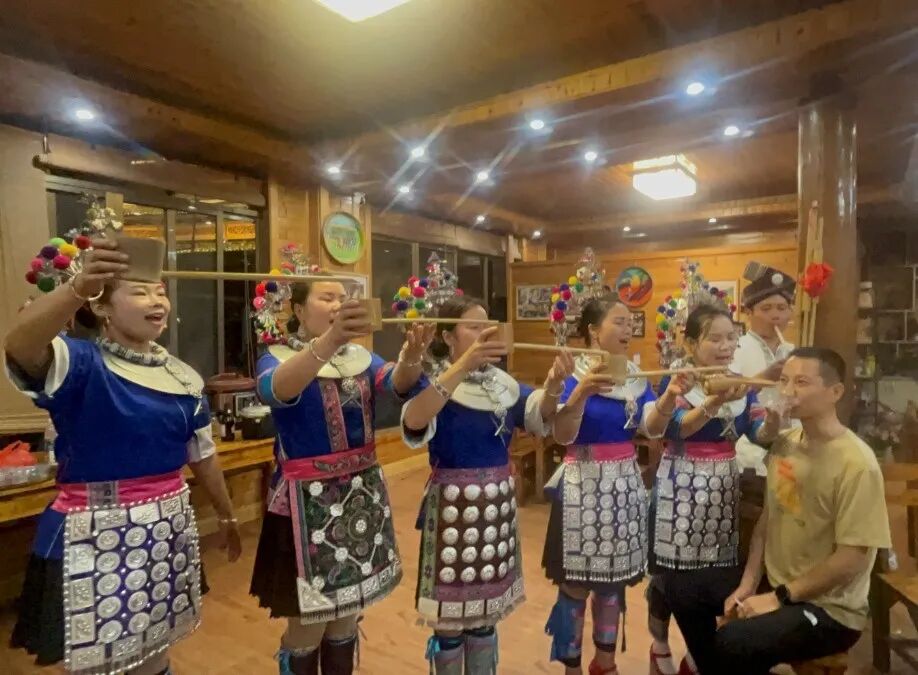 在有百年历史的程阳永济桥头体验拦路迎宾,充满互动乐趣也不乏勇气考验;不论是山歌还是流行歌,只要是你擅长的尽管一展歌喉。