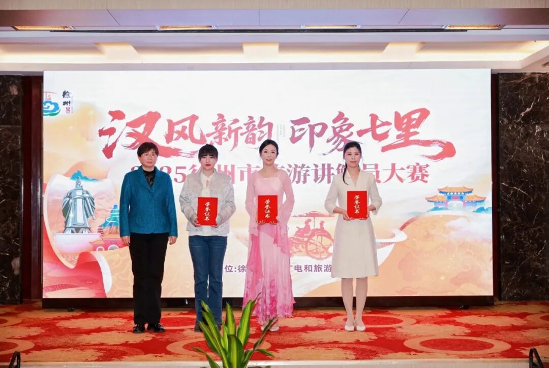 11月27日,由徐州市文广旅局组织开展的“汉风新韵•印象七里”2025徐州市旅游讲解员大赛圆满落幕。龟山景区选派的3名优秀讲解员与来自全市各景区和旅行社的40名讲解员同台竞技,经过两天多轮激烈角逐,景区讲解员刘楚凭借扎实的知识储备与灵动的表达荣获一等奖,任靖、李莹以沉稳的发挥与饱满的热情斩获二等奖,三人用实力为景区赢得荣誉,也为汉文化传播注入鲜活力量。