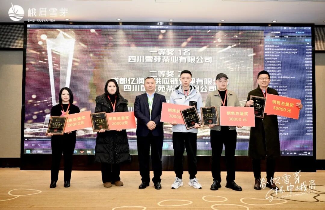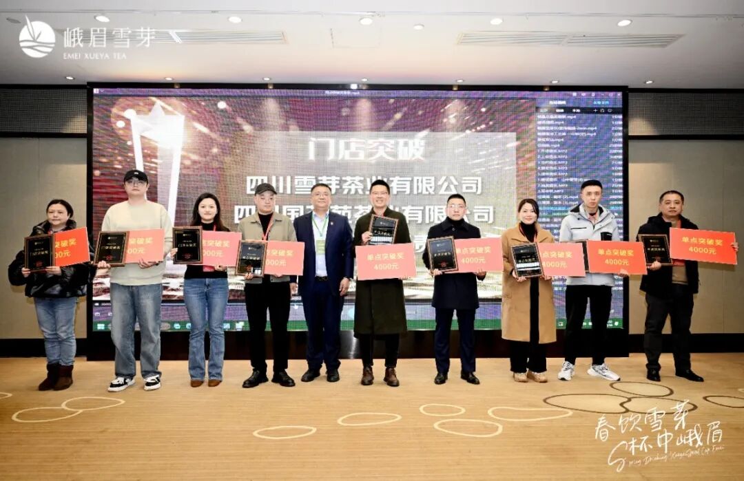 动员会上,“峨眉雪芽”对2024年表现优异的团队和个人进行了表彰,成都晨春秋芽茶叶有限公司的陈白寿分享了“拥抱变化,逆风飞扬—用流量思维突破销售困局”;成都文殊坊专卖店的汪俊分享了“峨眉山月照锦城—成都雪芽文殊坊店成长之路”;“峨眉雪芽”集团以《经营致胜—新时期经营破局策略》为题,讲述了“峨眉雪芽”茶业市场营销策略与价值塑造的方向和2025年的新思路,新战略,力争在新的一年创造新的辉煌。