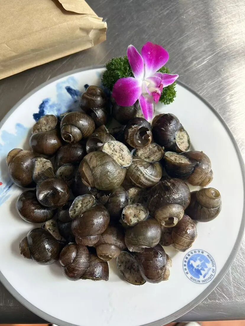 记者看了一下,袋装的田螺酿可以算是预制菜,已经进行调味等烹饪处理,食用方法非常简单,可以微波炉加热或加入凉水煮开。对于喜欢重口味的人来说,也可以加入酸笋、酸辣椒等再进行一番简单的焖煮即可。试吃了一下,其肉馅富有弹性,爽口,不用费力吸,只要轻轻一敲螺壳就能吃到了。凭借这样一款产品和其生产工艺,桂肴团队在大赛中获得了大奖。“在传统制作中,田螺酿馅料主要是螺肉加入猪肉,而不同的厨师对于两者的配比和其他辅料都有自己的配方。”劳明沁说,兴安、全州等地的田螺酿里,薄荷会比紫苏的量多,而阳朔、平乐等地的田螺酿馅料里,紫苏会多于薄荷。为了找到螺肉、猪肉、紫苏、薄荷以及食盐最佳的比例,他们进行了一次又一次的实验。一般来说,做菜都是跟灶台和锅盆打交道,他们为了找到最佳馅料配比,还在实验室里进行了数据分析。