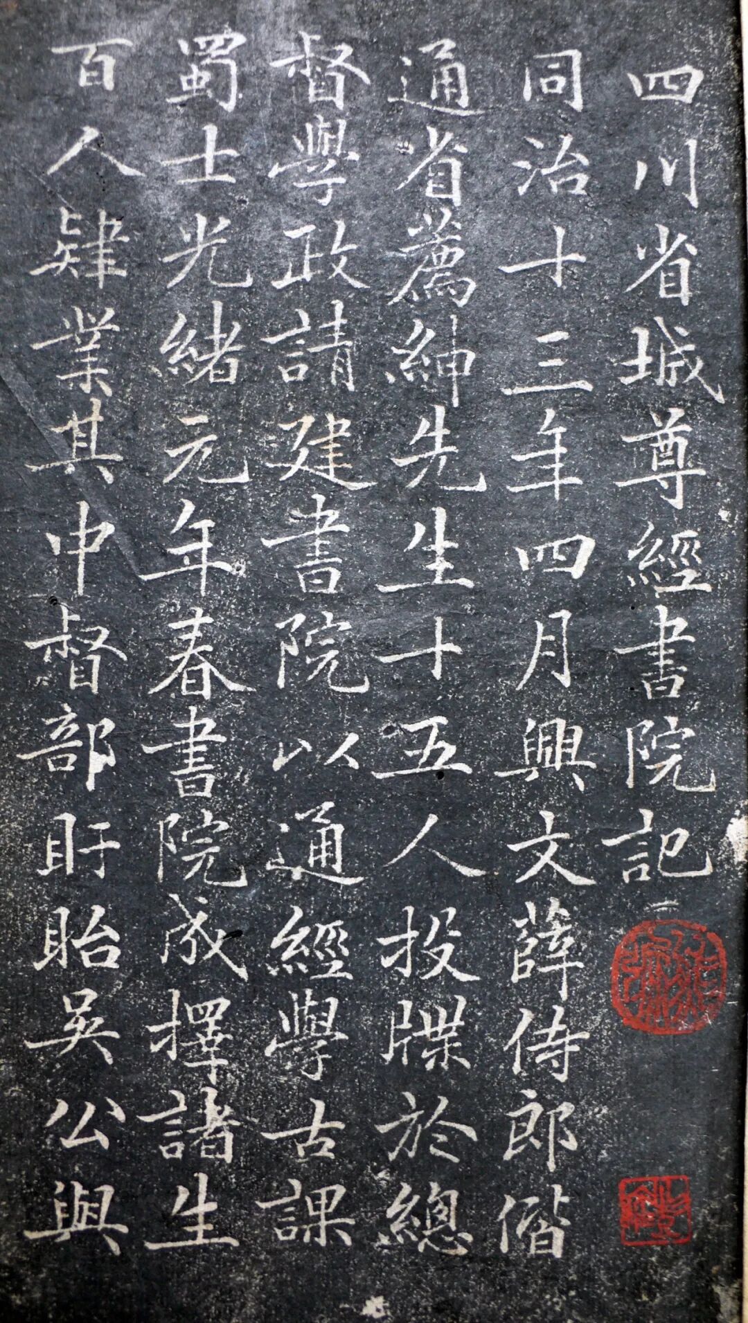 笔者有幸收藏了两件清光绪年间碑帖拓片,分别是光绪二年(1876年)《四川省城尊经书院记》和光绪三十二年(1906年)成都《贡院废号记》。这两件拓片内容独特有趣,一者记录了“兴科举”的盛况,另一者则见证了“废科举”的历史转折,笔者通过对相关资料的查阅研究,认为其有一定的文史价值,特撰此文与同好者共赏。