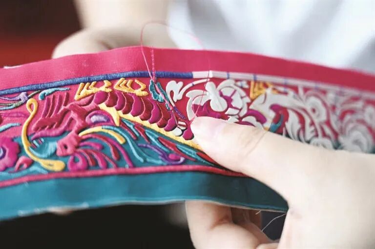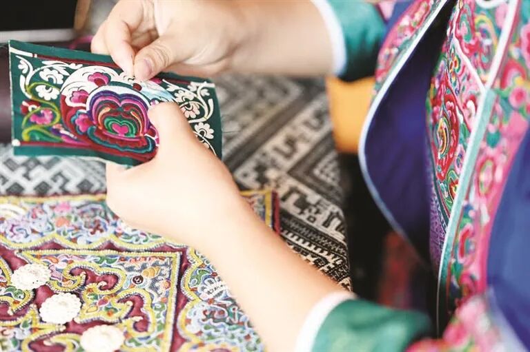 绣娘精心绣制纹样