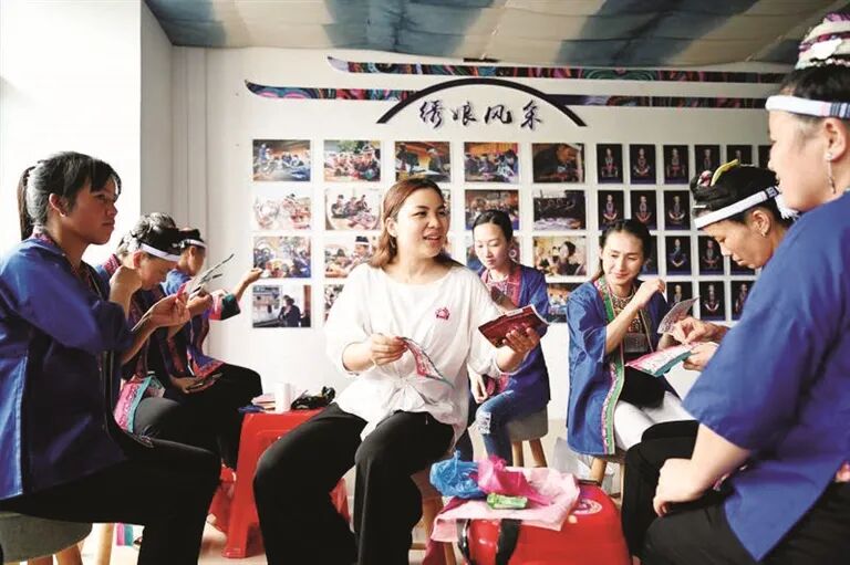曾经,这门因耗时长却难换收入的手艺面临困境。覃桂珍的母亲韦清花说:“过去,一套侗族服饰只能卖100元左右,这样精细艰辛地劳作,很难给家庭带来多少收入。”为贴补家用,韦清花经常绣到深夜。转机出现在保护非遗的春风吹进侗乡之时。2018年,在女儿覃桂珍的建议下,韦清花创办了清花绣坊。