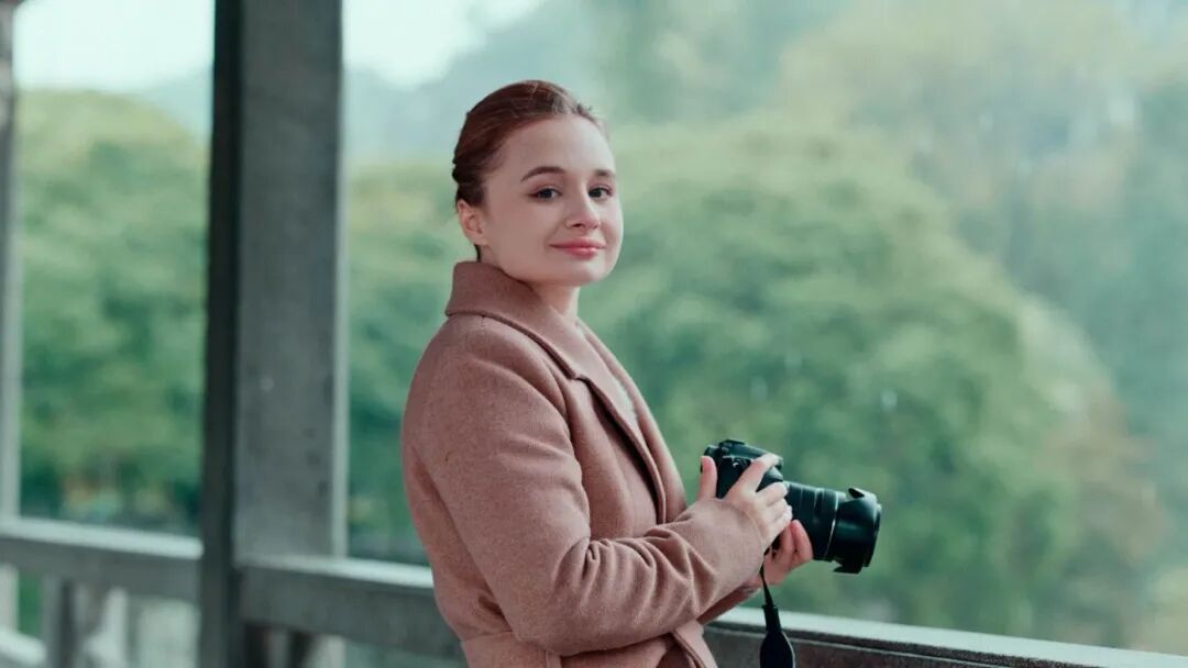站在花桥上,她用相机记录下眼中的桂林山水。桥下的倒影、远处的山峰,与她的身影共同构成一幅生动画面。