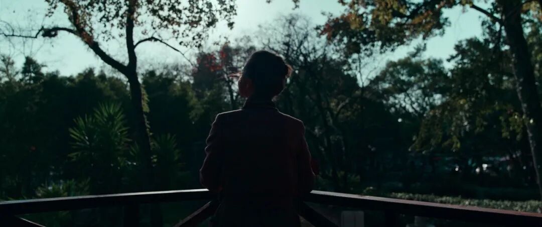 景区小木屋前,她的背影静静凝视远方。简约的木屋、静谧的山水,与她的存在共同诠释了“人在画中游”的意境。