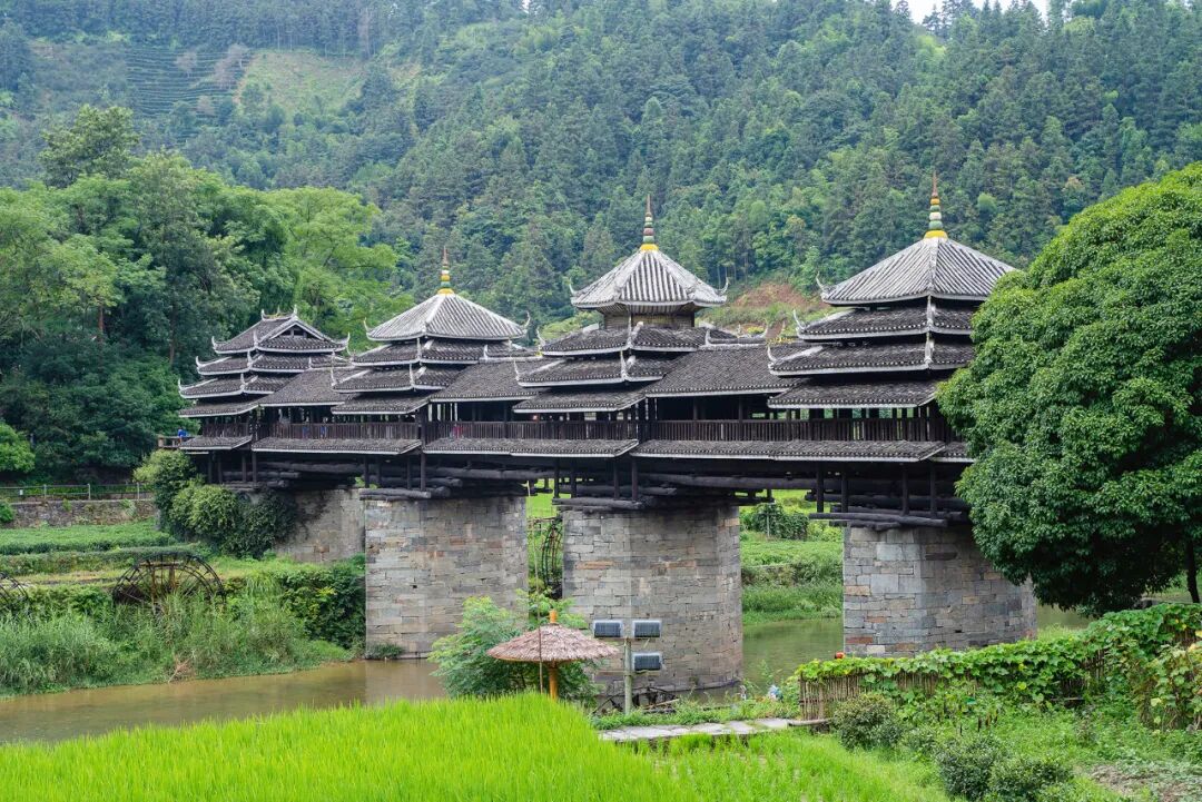 有千年历史的程阳八寨,是侗族文化的活态博物馆,程阳桥头的拦路迎宾、侗寨的百家宴,诉说着侗家人的待客之道。寨中,13座鼓楼、11座风雨桥相连成片,被称为“侗族建筑艺术的精华”。