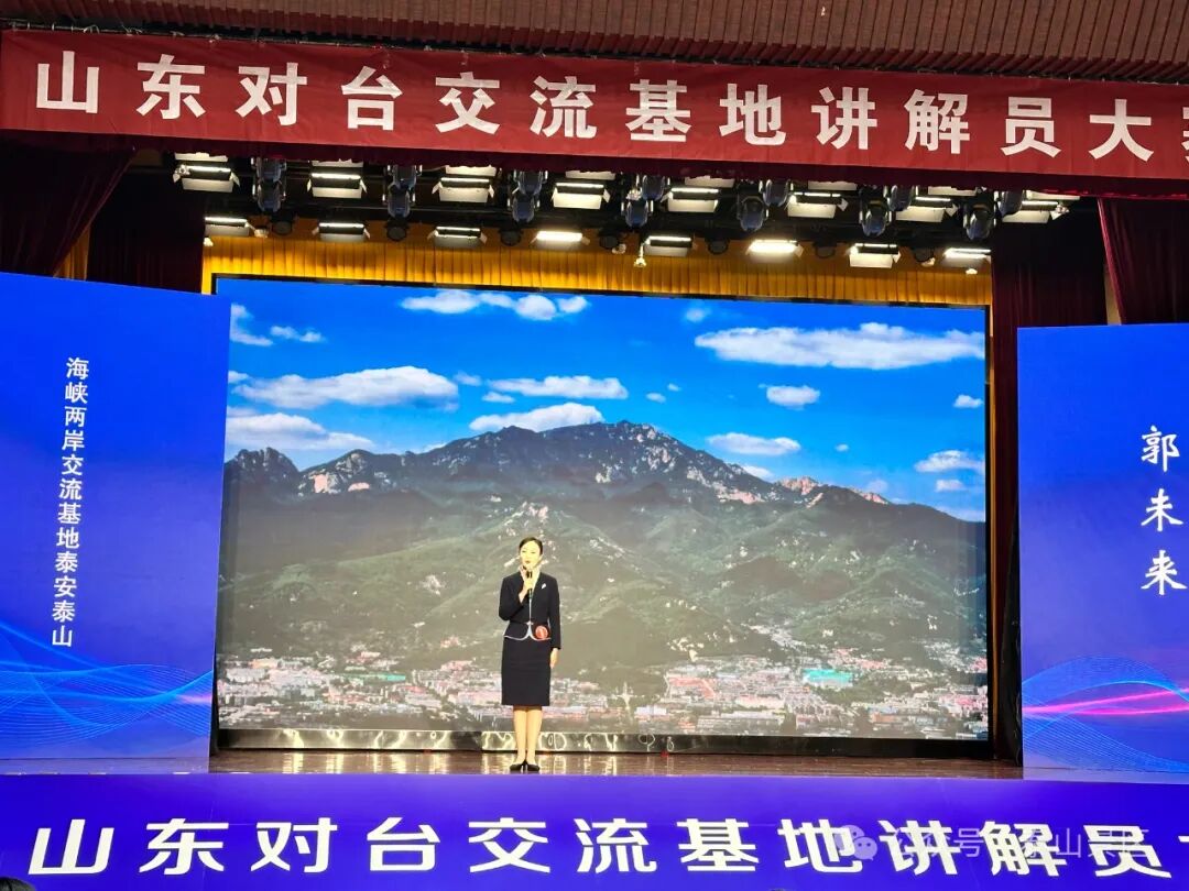 由山东省台办主办的山东对台交流基地讲解员大赛于12月5—6日在全国首家海峡两岸交流基地枣庄市台儿庄古城成功举办,21名参赛选手分别代表全省7个国家级海峡两岸交流基地和14个山东省海峡两岸交流基地。经过激烈角逐和现场打分,大赛共评出一等奖4名、二等奖5名、三等奖6名、优秀奖6名。来自泰安市博物馆的讲解员郭未来代表泰山海峡两岸交流基地参赛最终荣获一等奖。