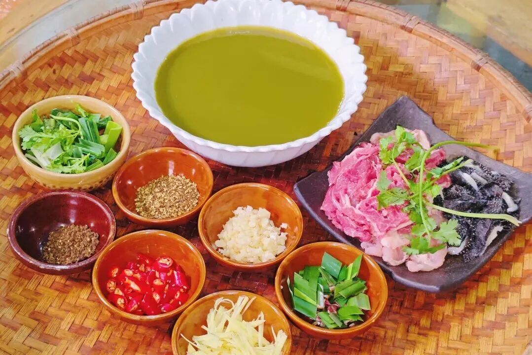 ✔️传统做法:牛胃未消化草汁做汤底,炖牛肉/羊肉+内脏,苦中回甘