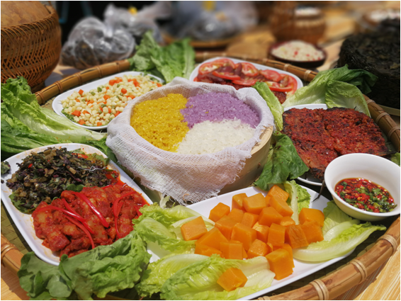 ✔️必尝三宝:酸汤鱼、火塘烤肉、七彩糯米饭
