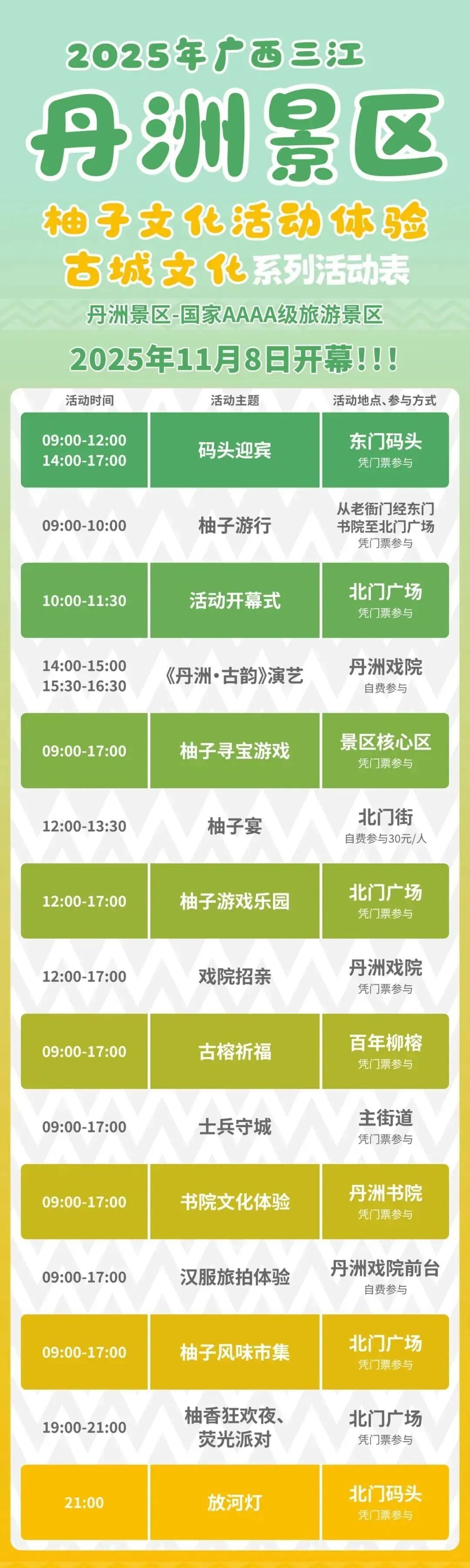 乘船上岛,参与丹洲一年一度的柚子文化活动,并品尝一桌风味独特 “柚子宴”。(整个11月的周末都有活动)