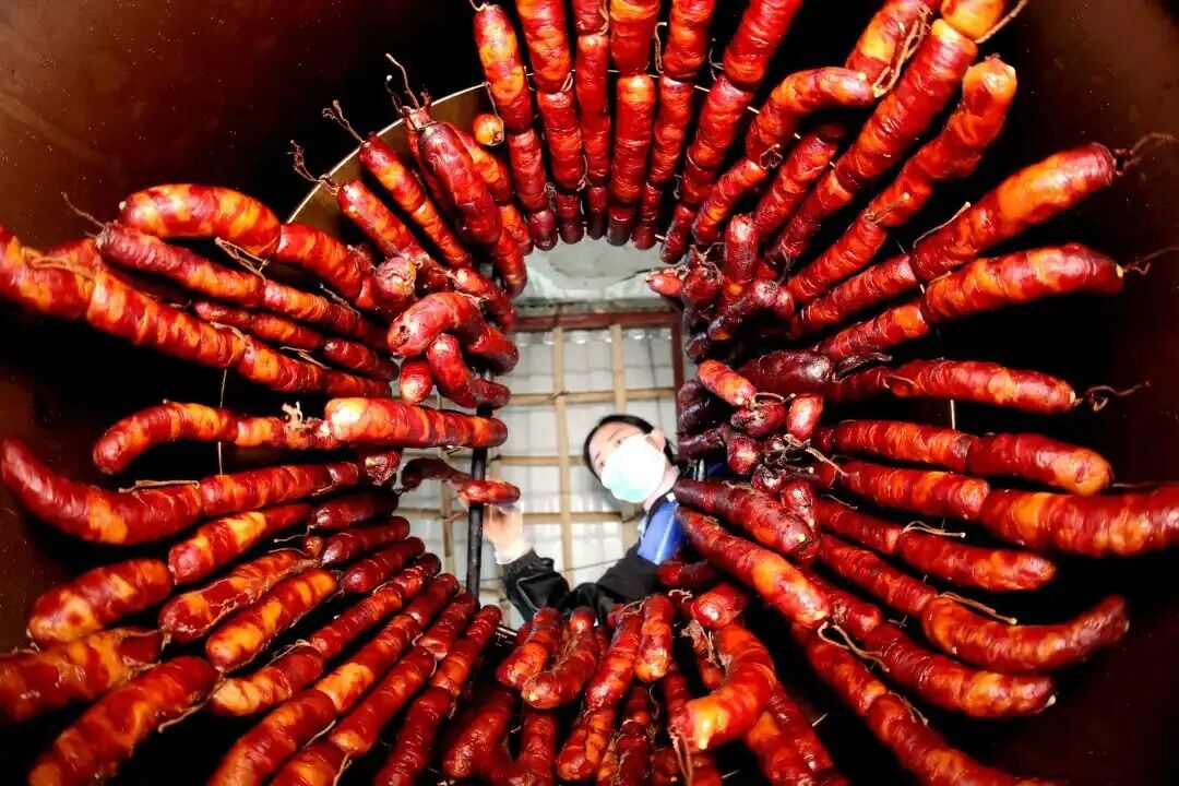 ✔️古法制作:用甘蔗渣、柚皮、炭火熏制,肥而不腻,咸香入骨!