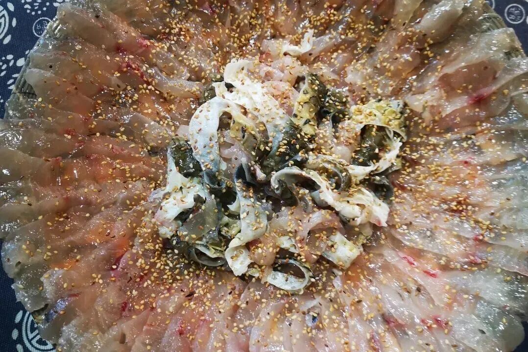 ✔️活鱼现杀:选用山泉养殖的草鱼,现杀薄切至透光