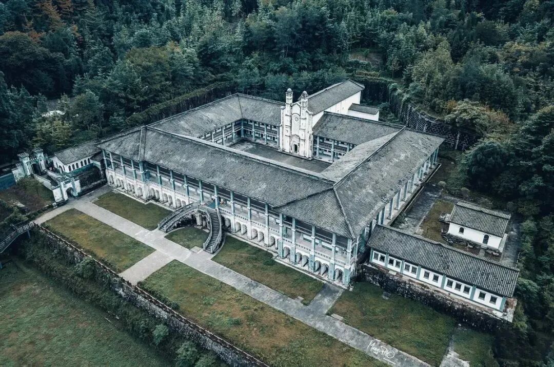 这栋建筑高大巍峨,共三层,总面积达1.8万平方米。细节与风格上中西合璧,既有中国四合院的结构,也有罗马式和哥特式建筑的特征。远远望去犹如一座隐身世外的巨大庄园,被称为中国版的“霍格沃兹”。