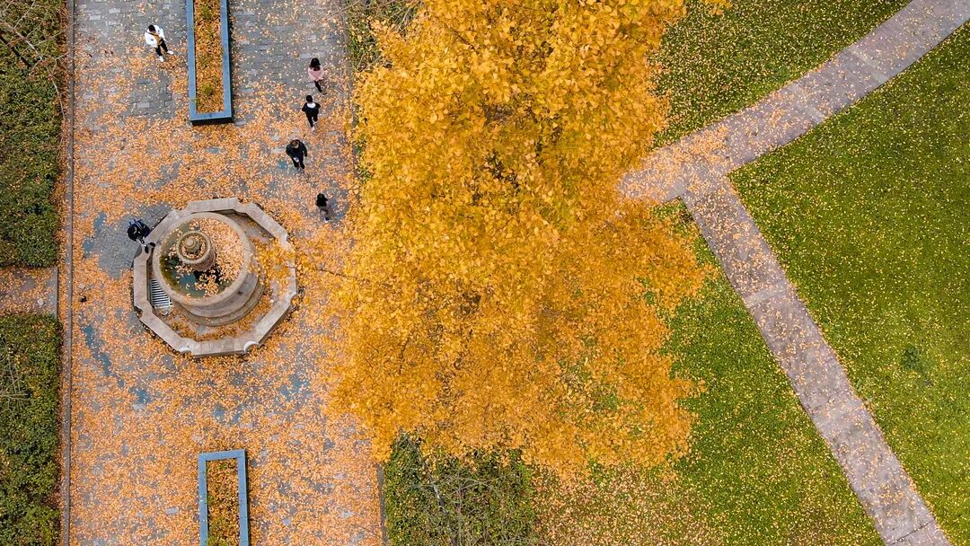 站在银杏树下,满目金黄,静静欣赏,每一枝每一片都是那么独特别致,使白鹿镇的初冬韵味更加浓厚。