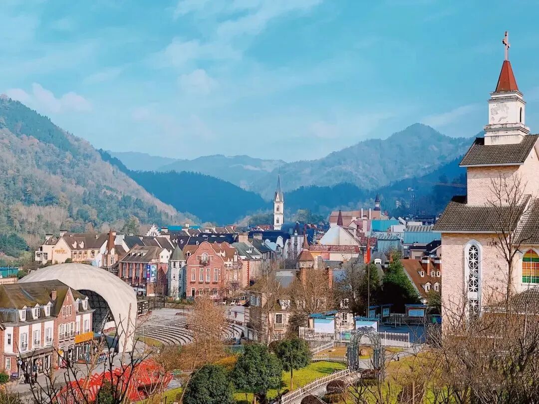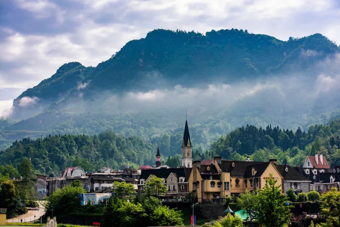 白鹿镇是国家AAAA级旅游景区,自然风景优美、生态环境良好,具有悠久的历史和丰富的宗教人文资源。它的迷人之处,和其他古镇不一样,来源于独树一帜的法式风情建筑。