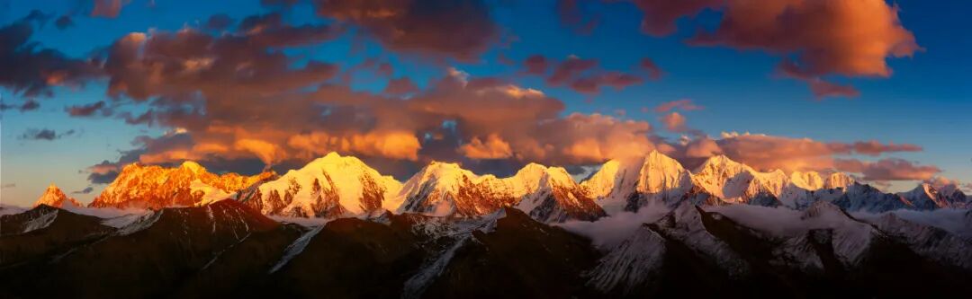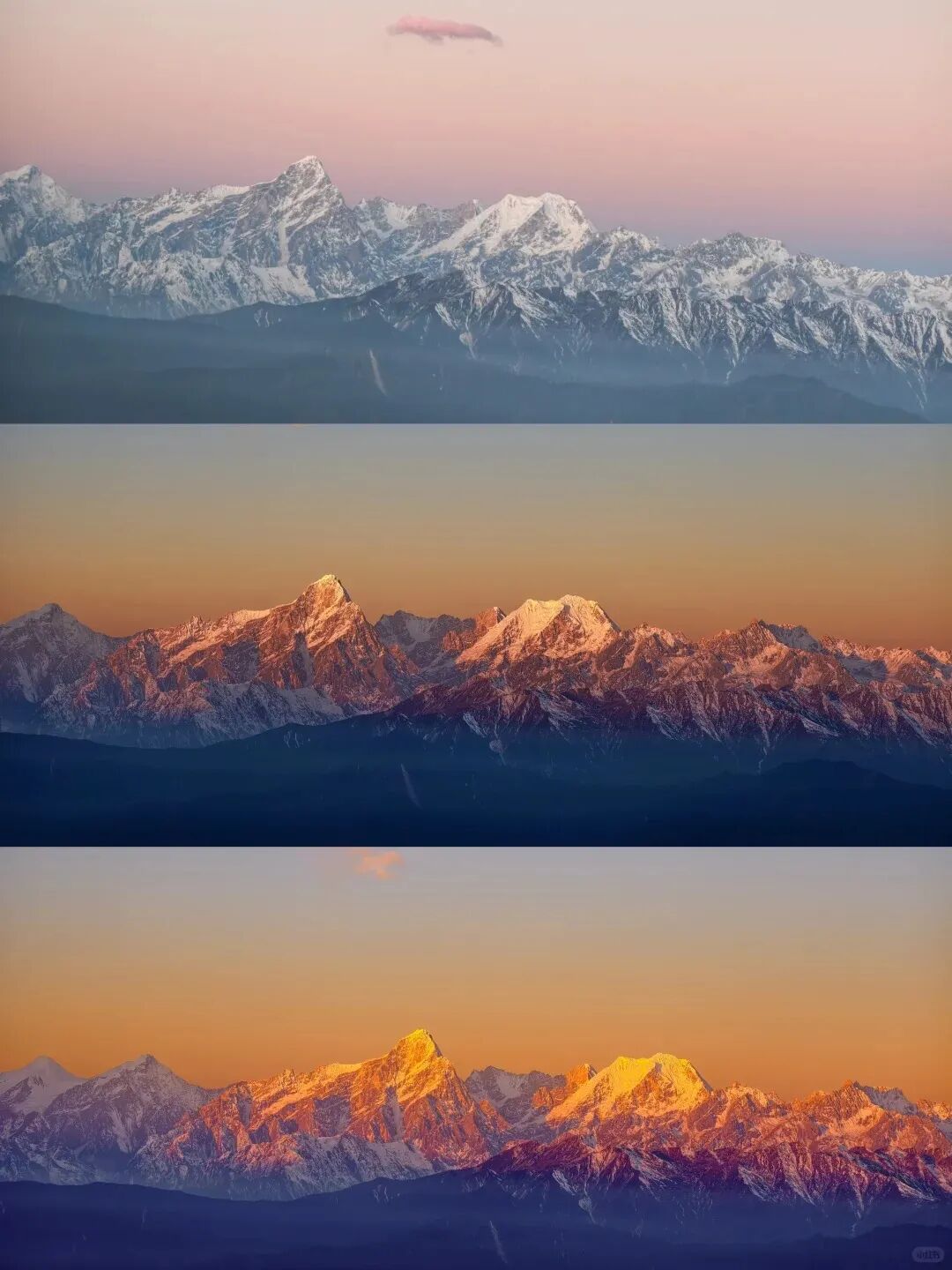 无需刻意找寻美景,这里360°都是全景盛宴,东望峨眉如黛、西眺贡嘎群峰、南观大瓦巍峨、北见二郎绵延,青藏高原山脉尽收眼底。
