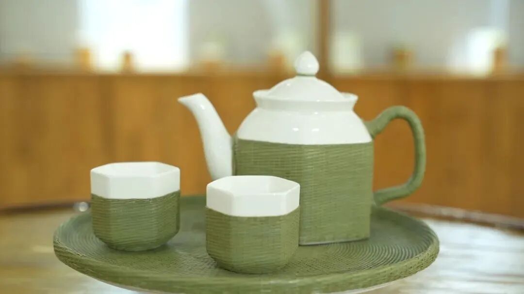 还有瓷胎竹编与法国奢侈品牌爱马仕旗下的子公司成功合作,推出的瓷胎竹编茶具高端系列产品👇